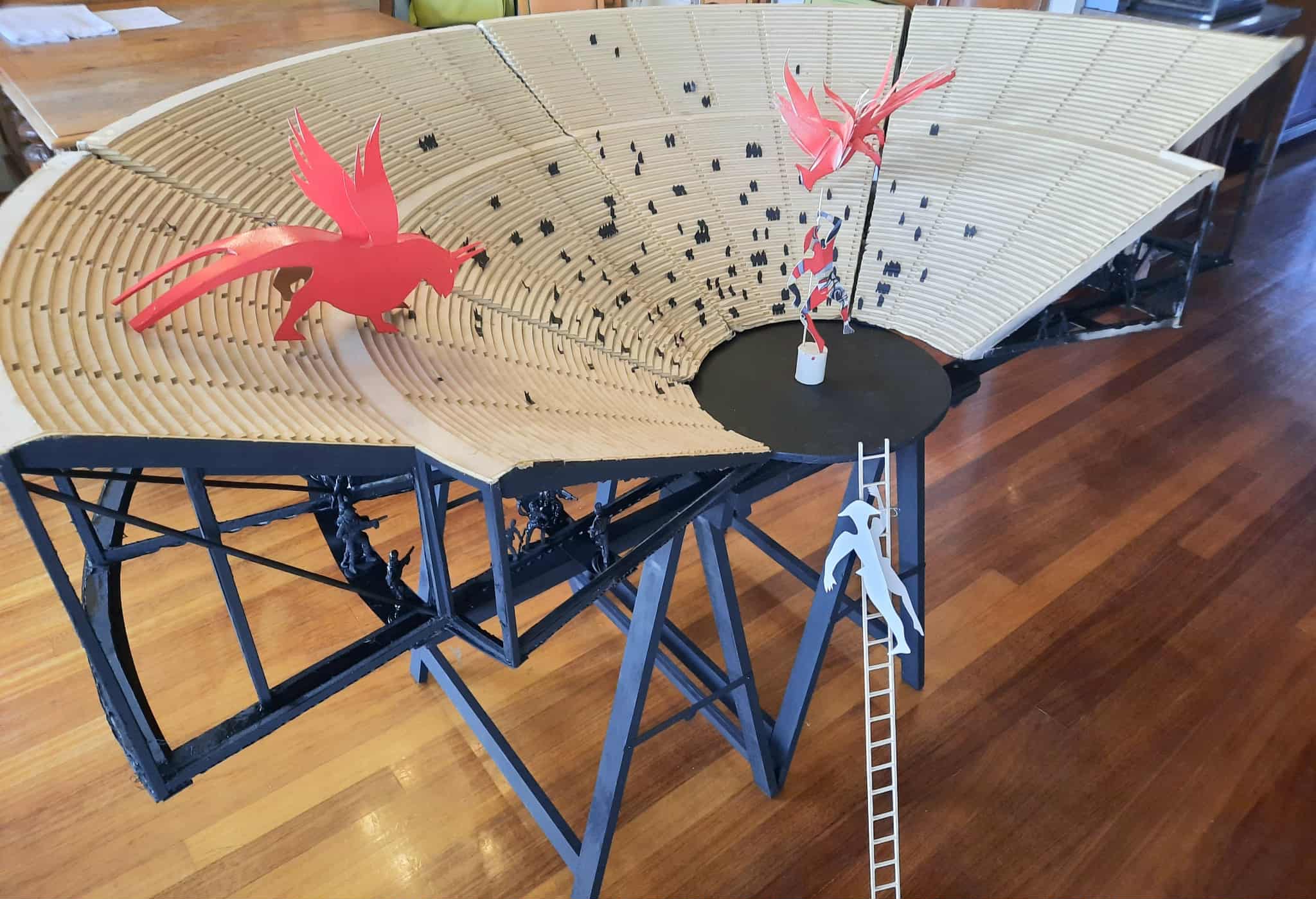Παράλληλα με την παρουσίαση, θα λειτουργήσει έκθεση χάρτινων γλυπτών κατασκευών, αποσπάσματα από τη σειρά έργων «Σκηνές από Χαρτί», στο φουαγιέ του Χώρου Ε.